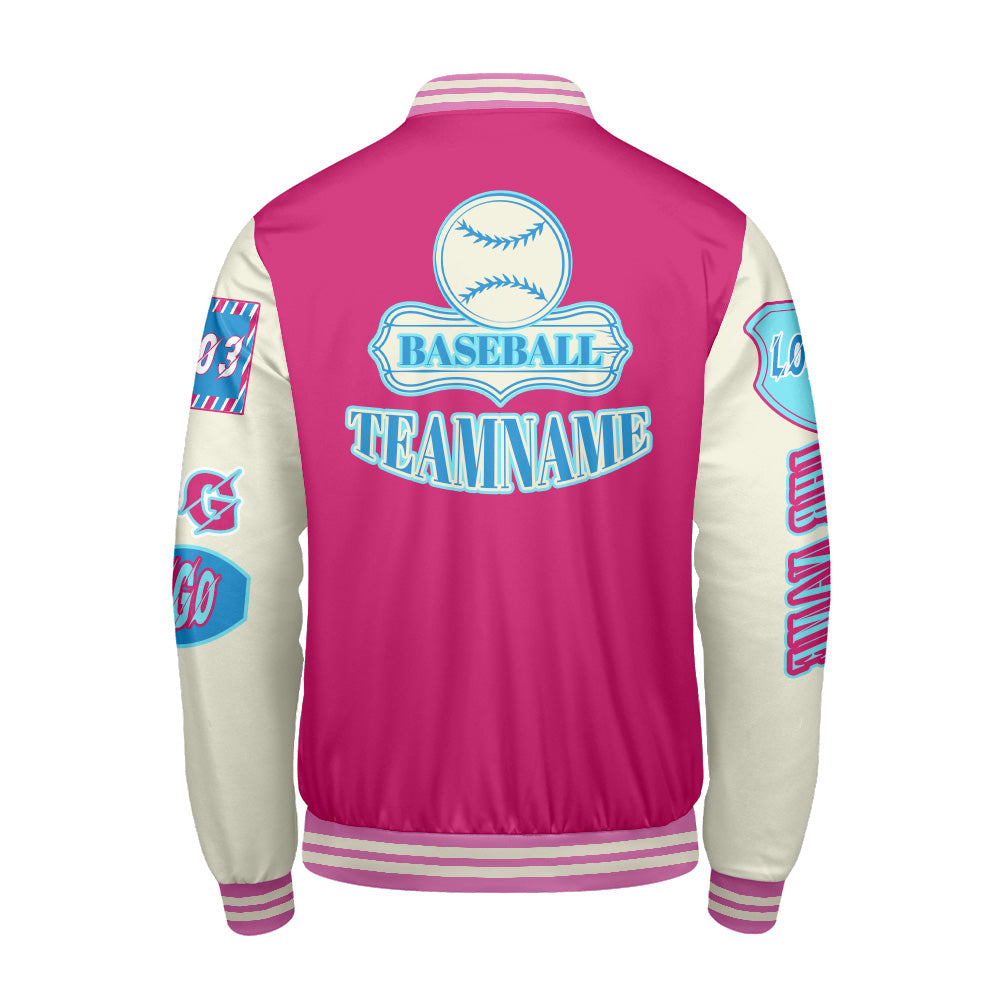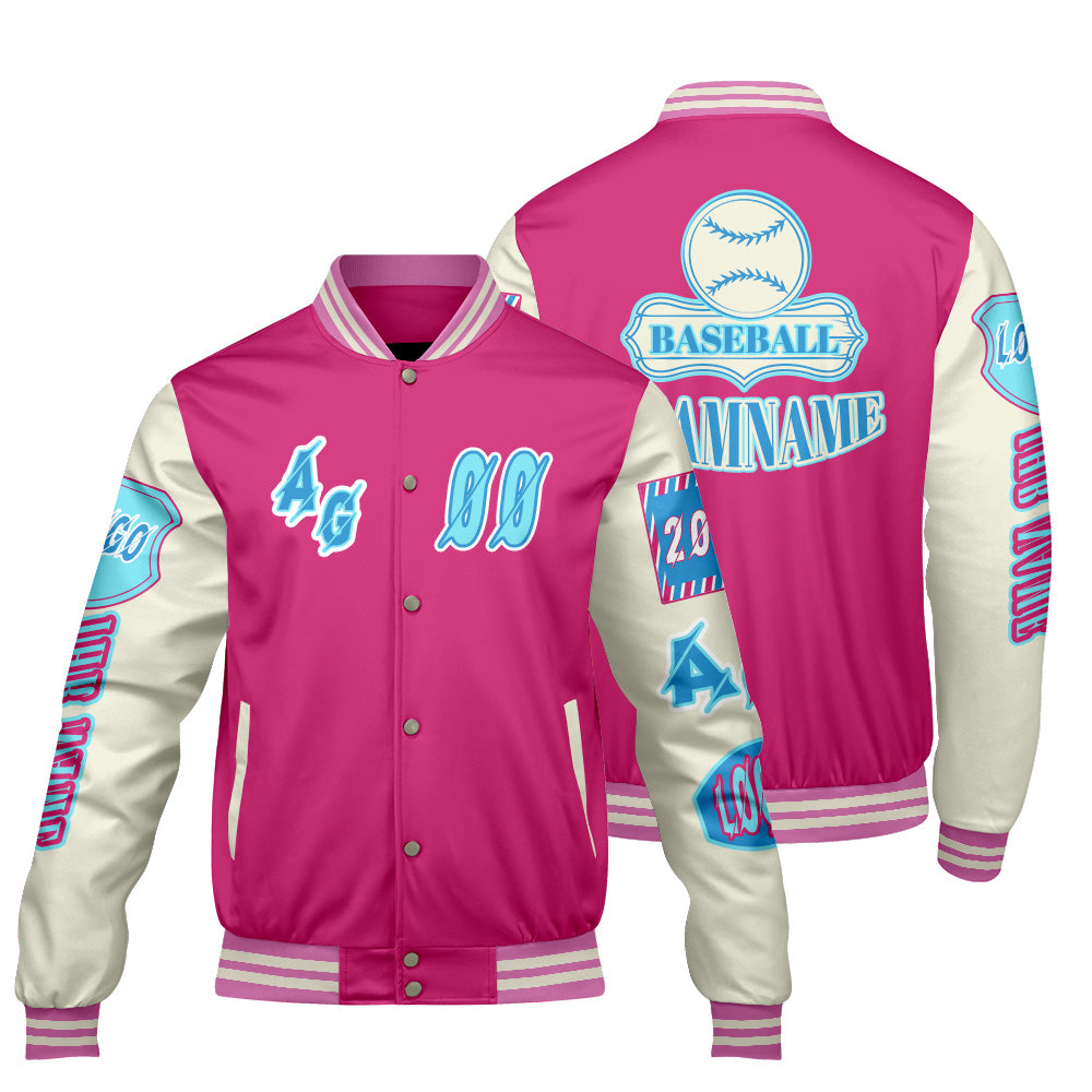 Maßgeschneiderte Rosa Blau Letterman Varsity Jacket Individuelle Stickerei  Druck nach Ihrem Wunsch