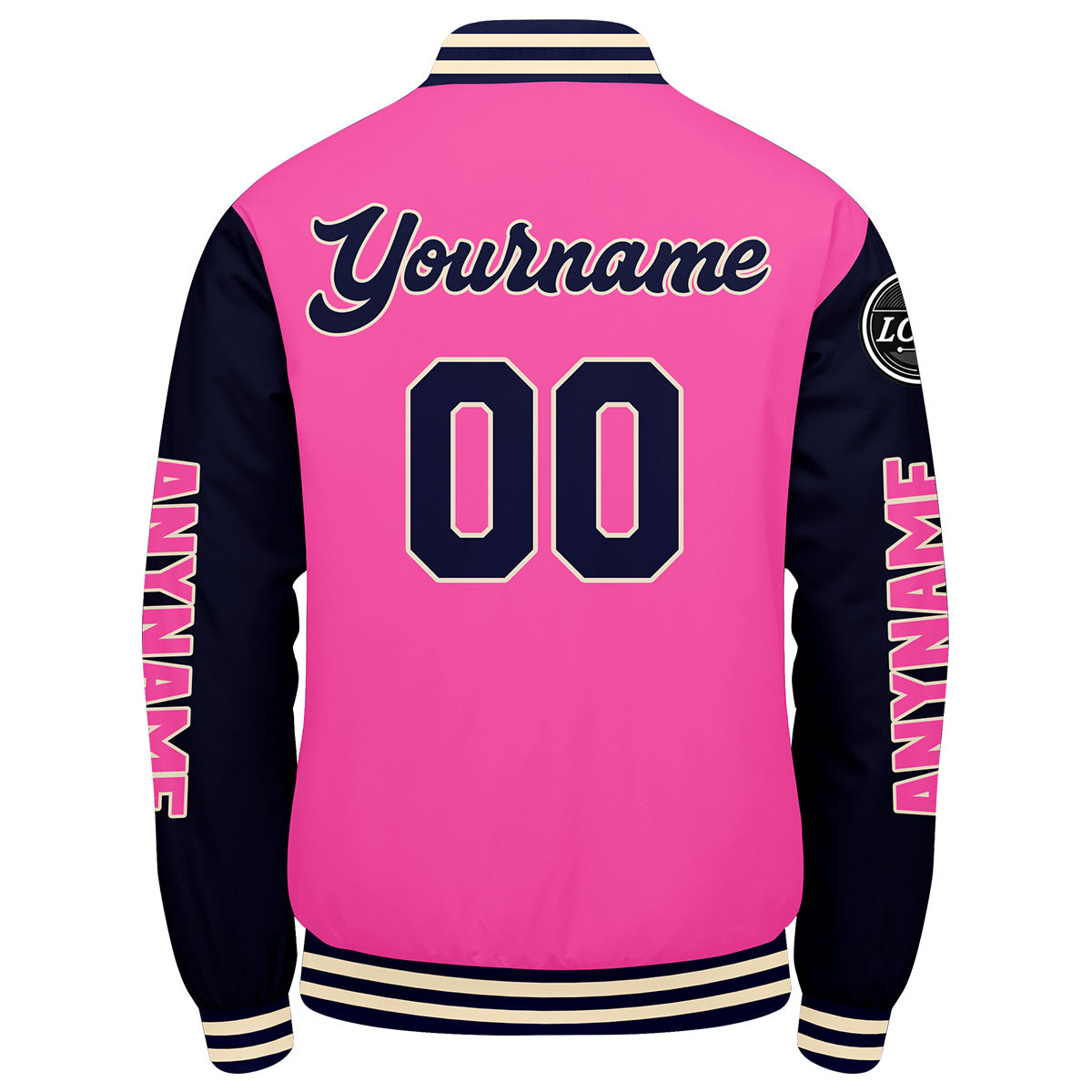 Maßgeschneiderte Rosa Marine Letterman Varsity Jacket Individuelle Stickerei Druck nach Ihrem Wunsch
