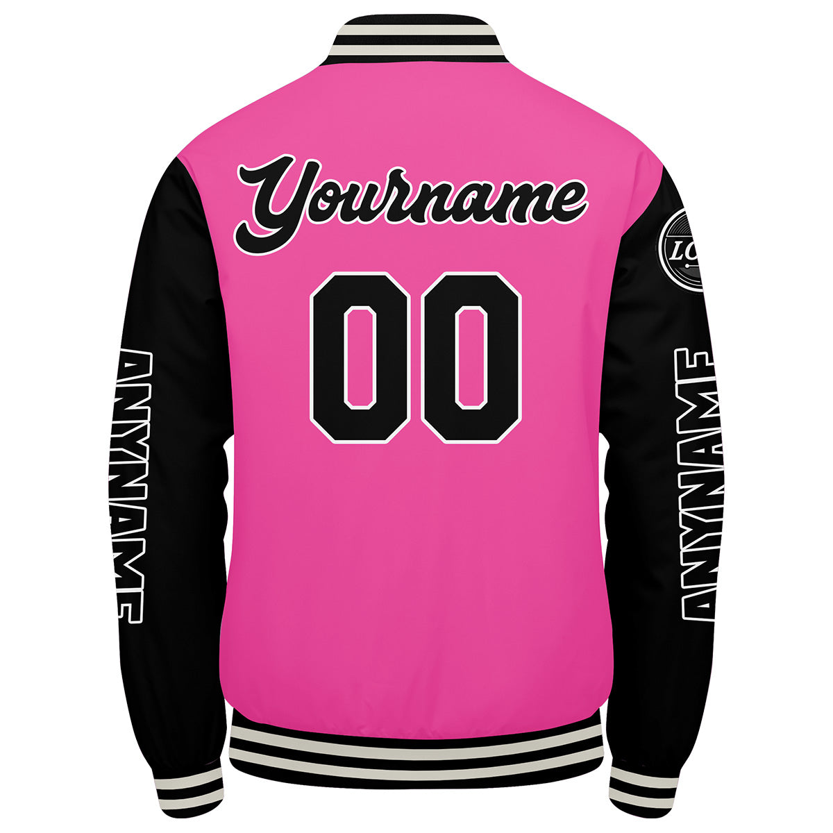 Maßgeschneiderte Rosa Schwarz Letterman Varsity Jacket Individuelle Stickerei Druck nach Ihrem Wunsch