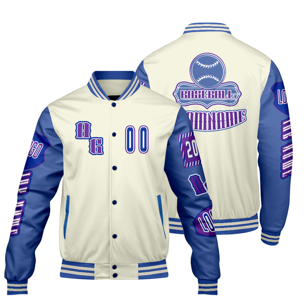 Maßgeschneiderte Rot Blau Lila Letterman Varsity Jacket Individuelle Stickerei Druck nach Ihrem Wunsch