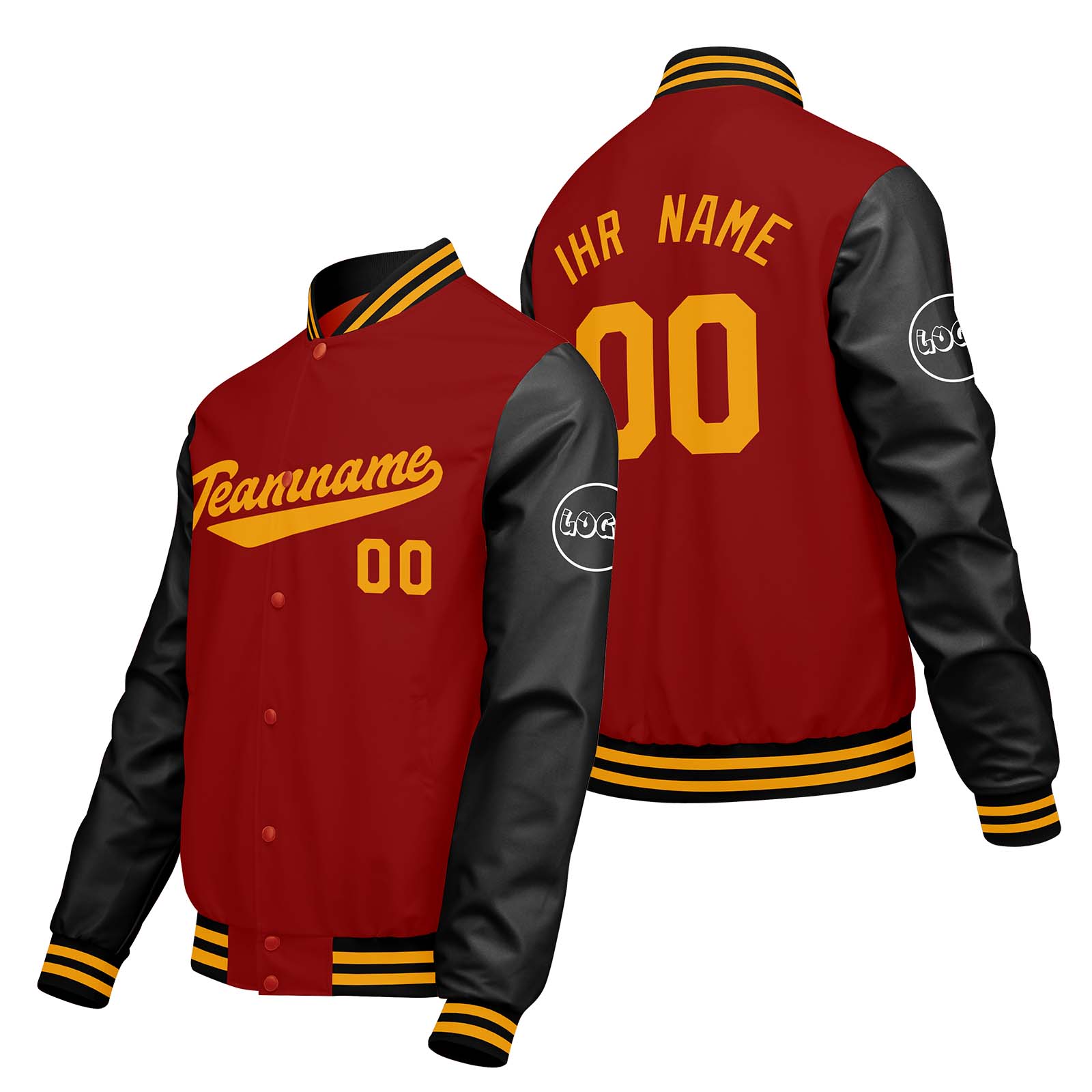 Maßgeschneiderte Rot Schwarz Letterman Varsity Jacket Individuelle Stickerei Druck nach Ihrem Wunsch