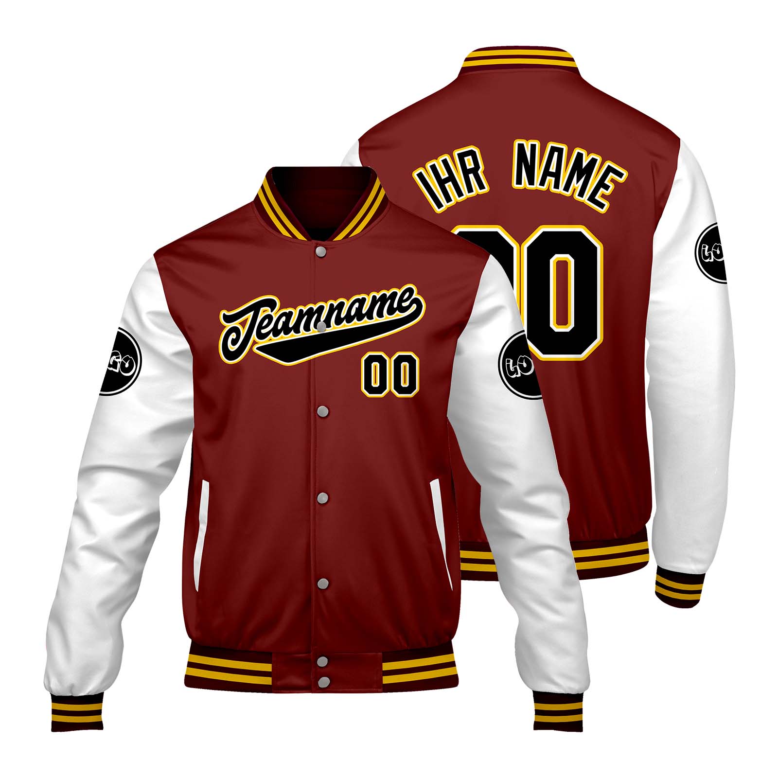 Maßgeschneiderte Rot Weiß Letterman Varsity Jacket Individuelle Stickerei Druck nach Ihrem Wunsch