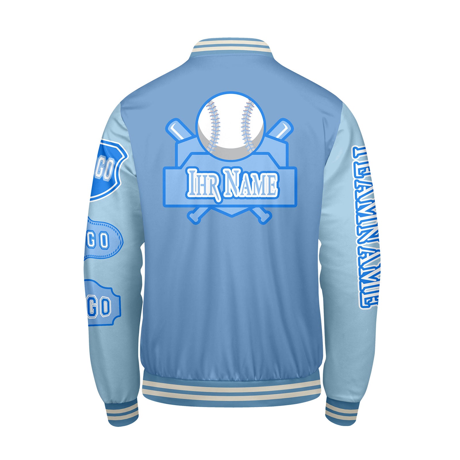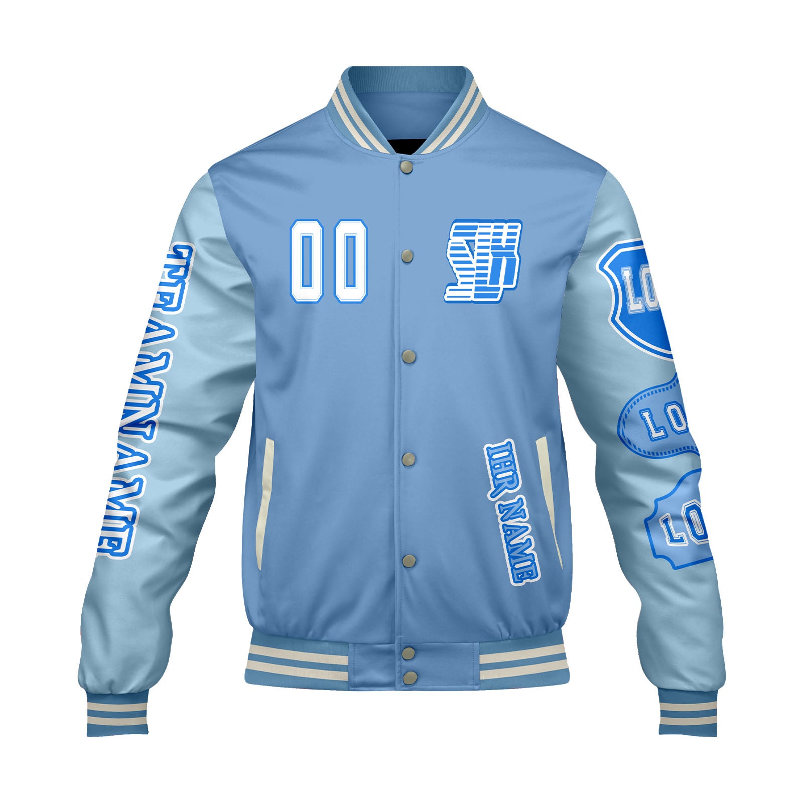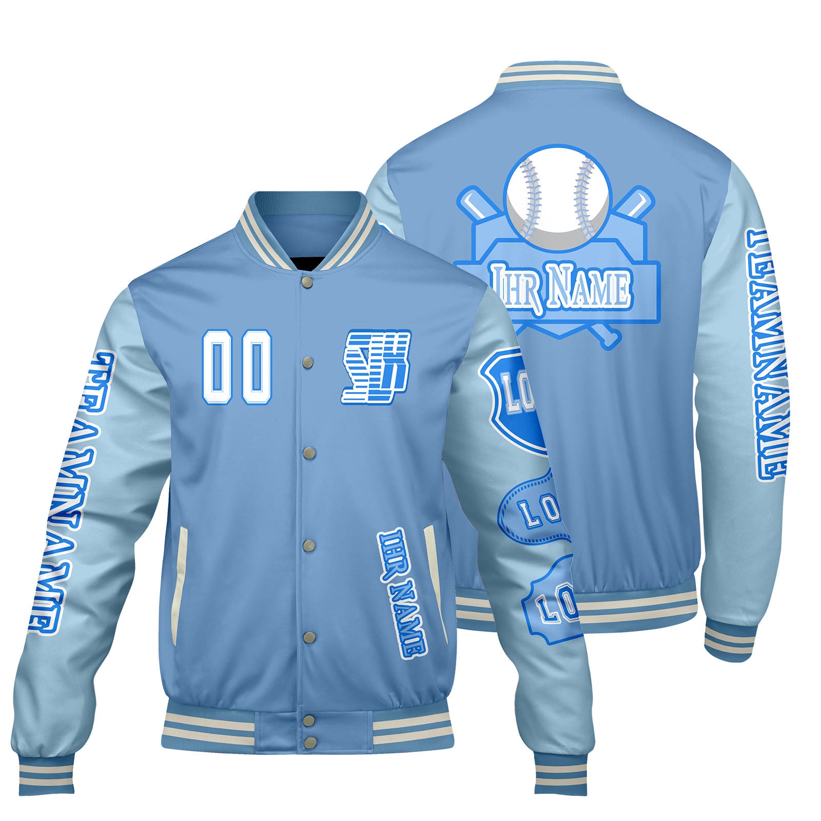 Maßgeschneiderte Blau Letterman Varsity Jacket Individuelle Stickerei  Druck nach Ihrem Wunsch