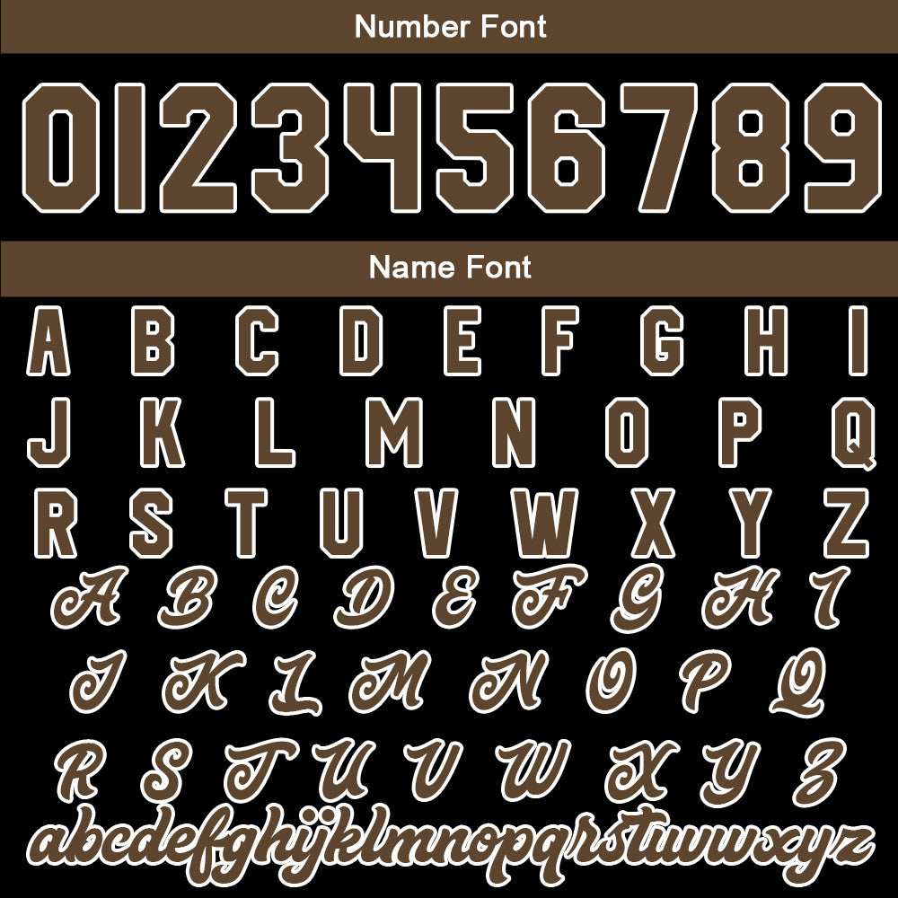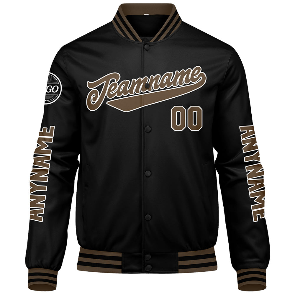 Maßgeschneiderte Schwarz Braun Letterman Varsity Jacket Individuelle Stickerei Druck nach Ihrem Wunsch