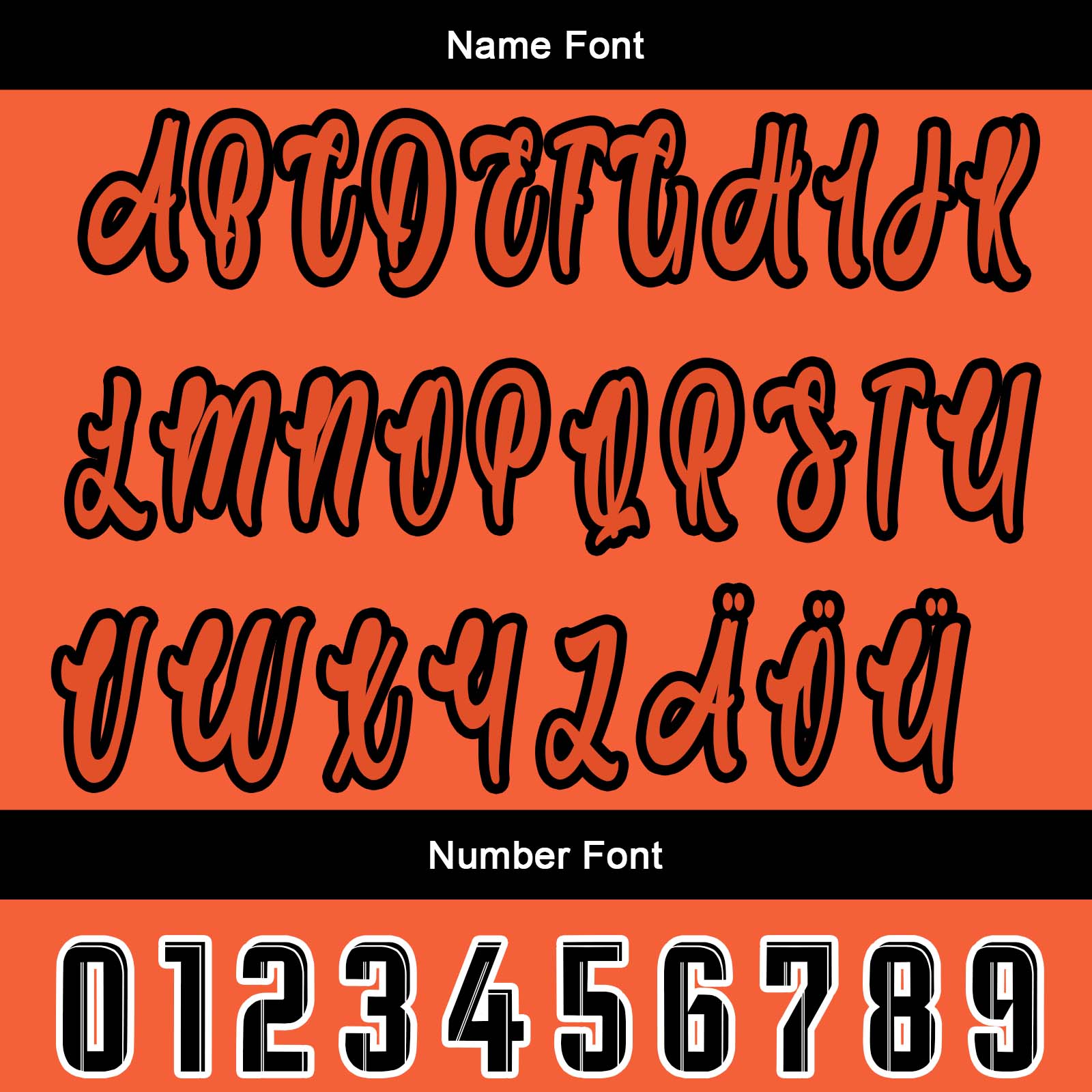 Maßgeschneiderte Schwarz Orange Letterman Varsity Jacket Individuelle Stickerei  Druck nach Ihrem Wunsch