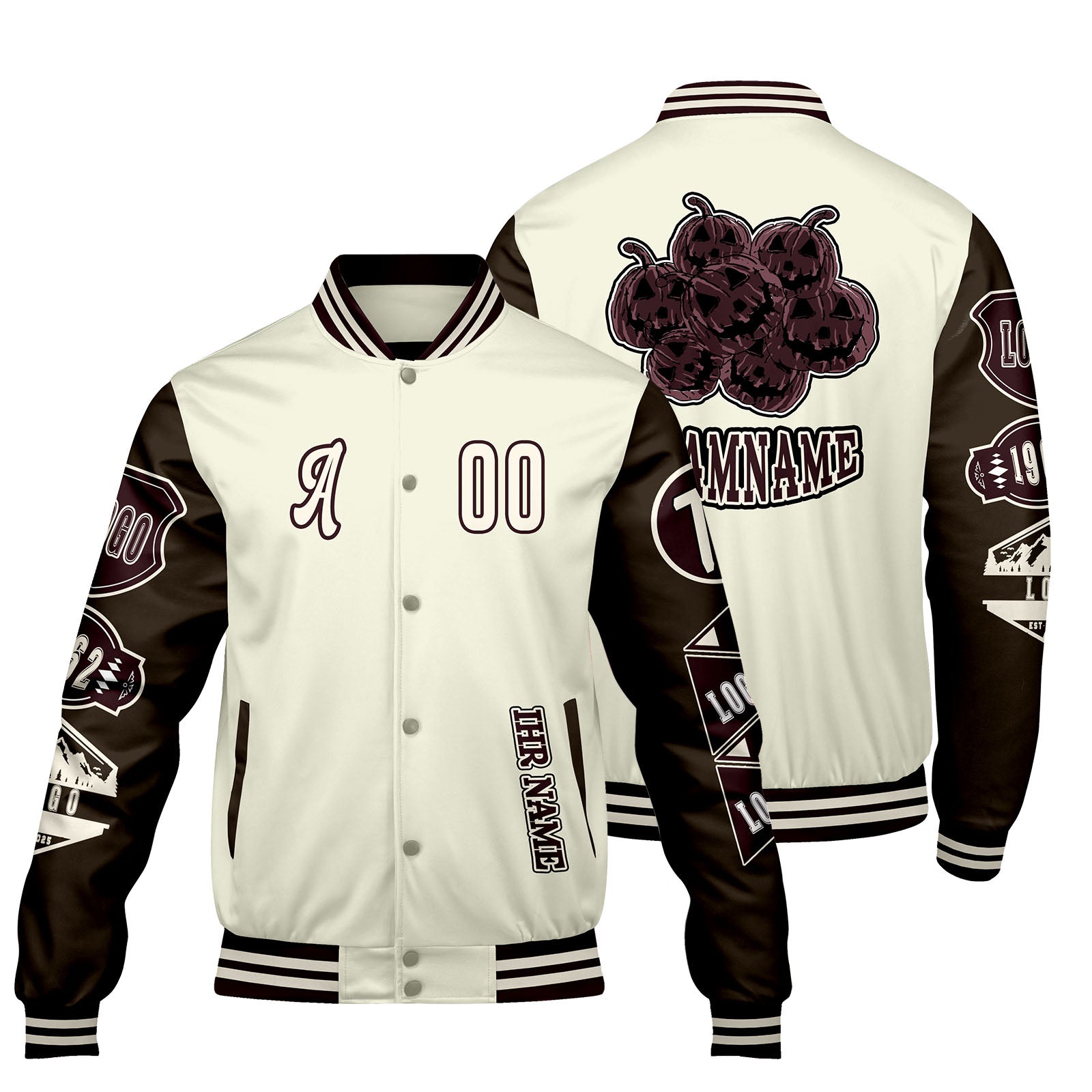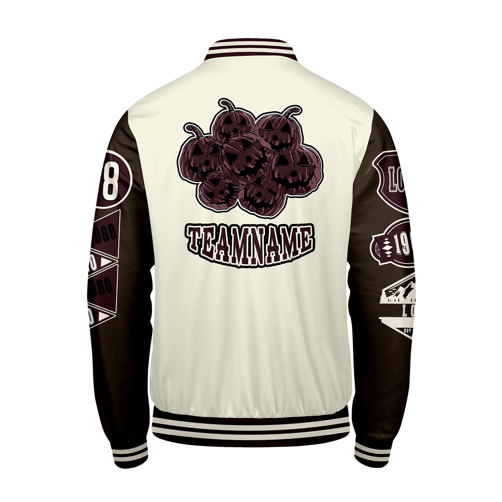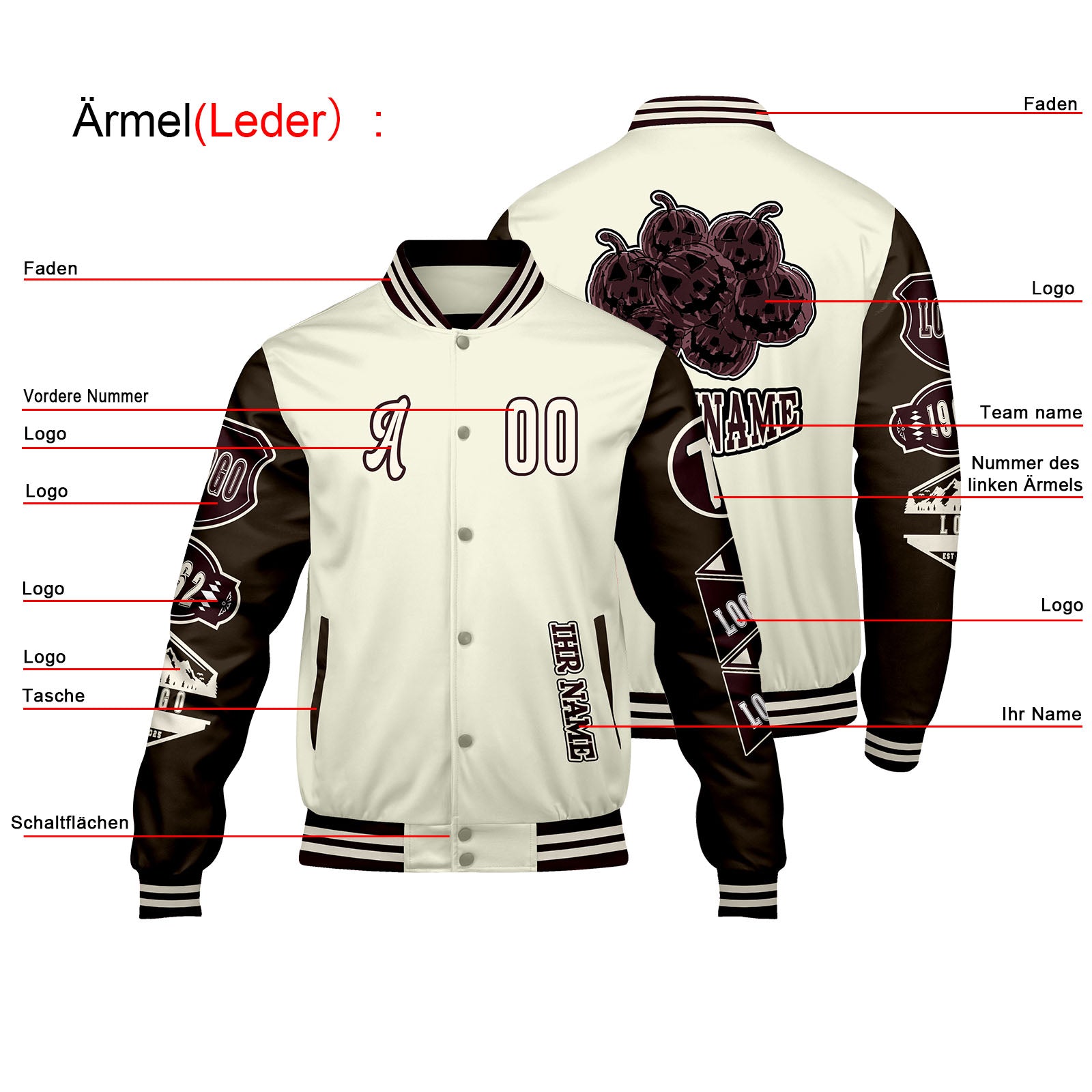 Maßgeschneiderte Weiß Braun Letterman Varsity Jacket Individuelle Stickerei  Druck nach Ihrem Wunsch