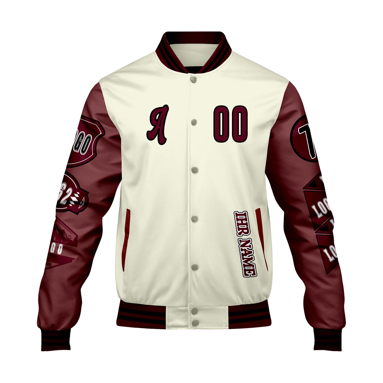 Maßgeschneiderte Weiß Burgund Letterman Varsity Jacket Individuelle Stickerei Druck nach Ihrem Wunsch