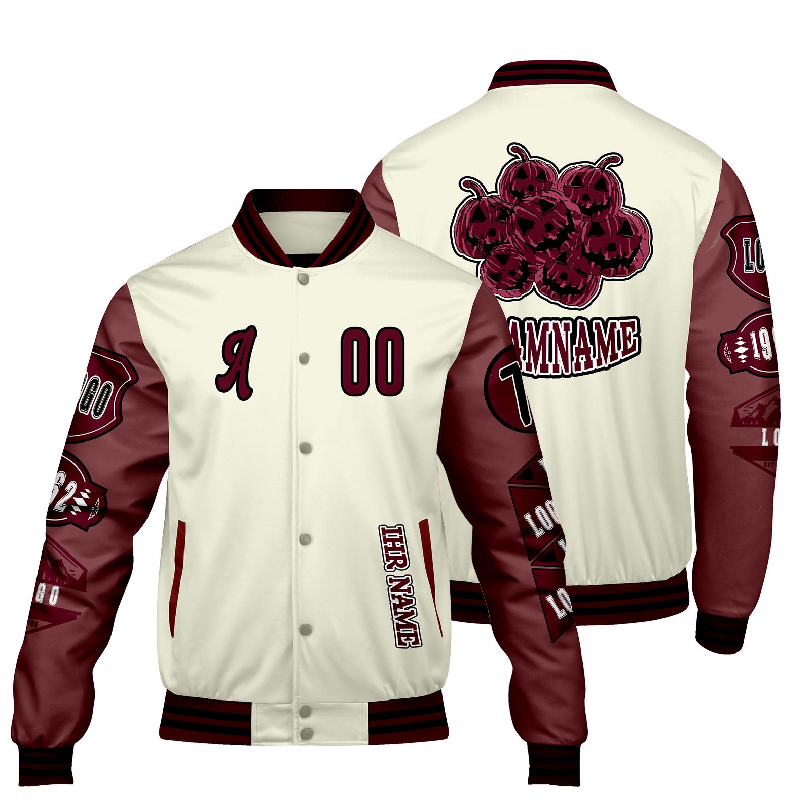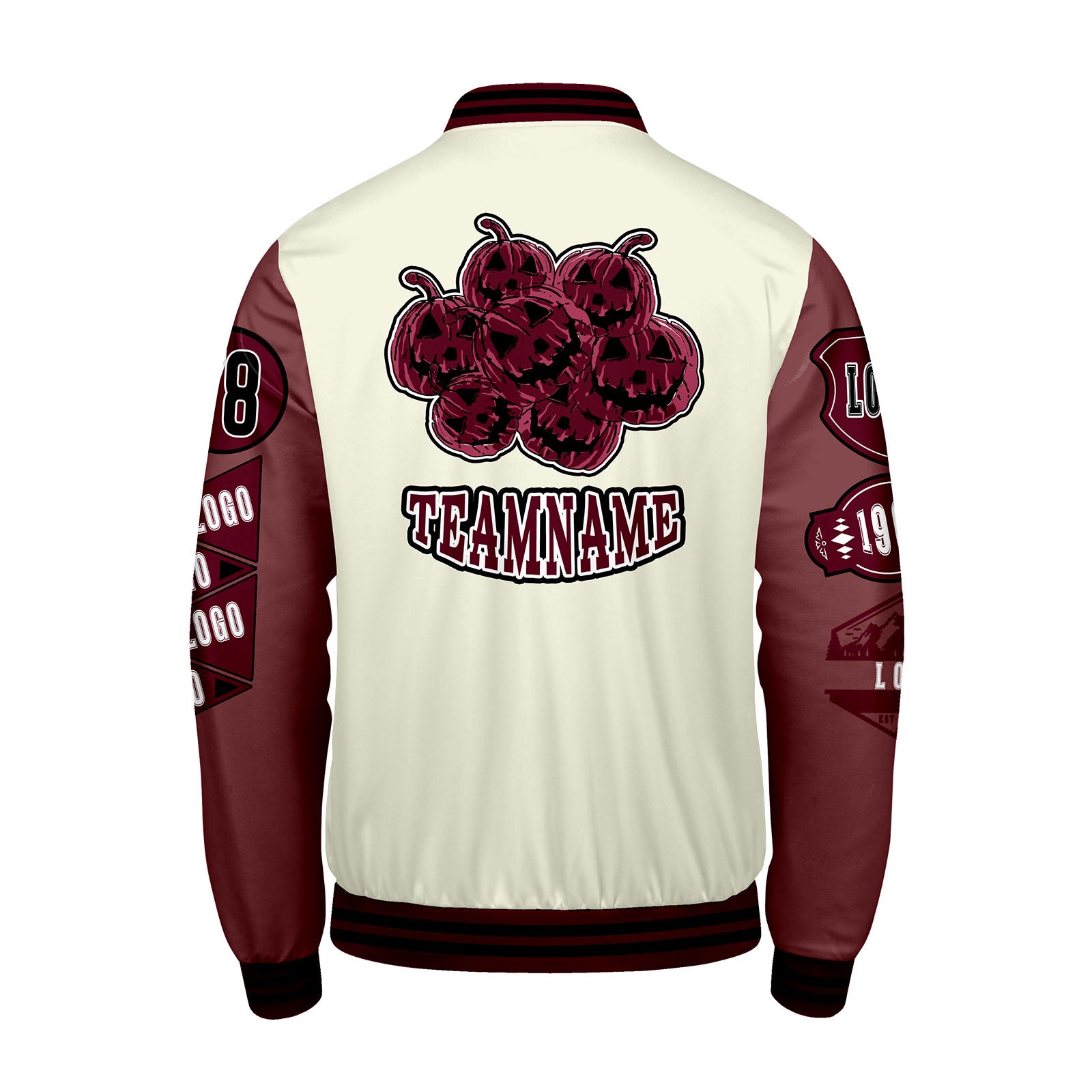 Maßgeschneiderte Weiß Burgund Letterman Varsity Jacket Individuelle Stickerei  Druck nach Ihrem Wunsch