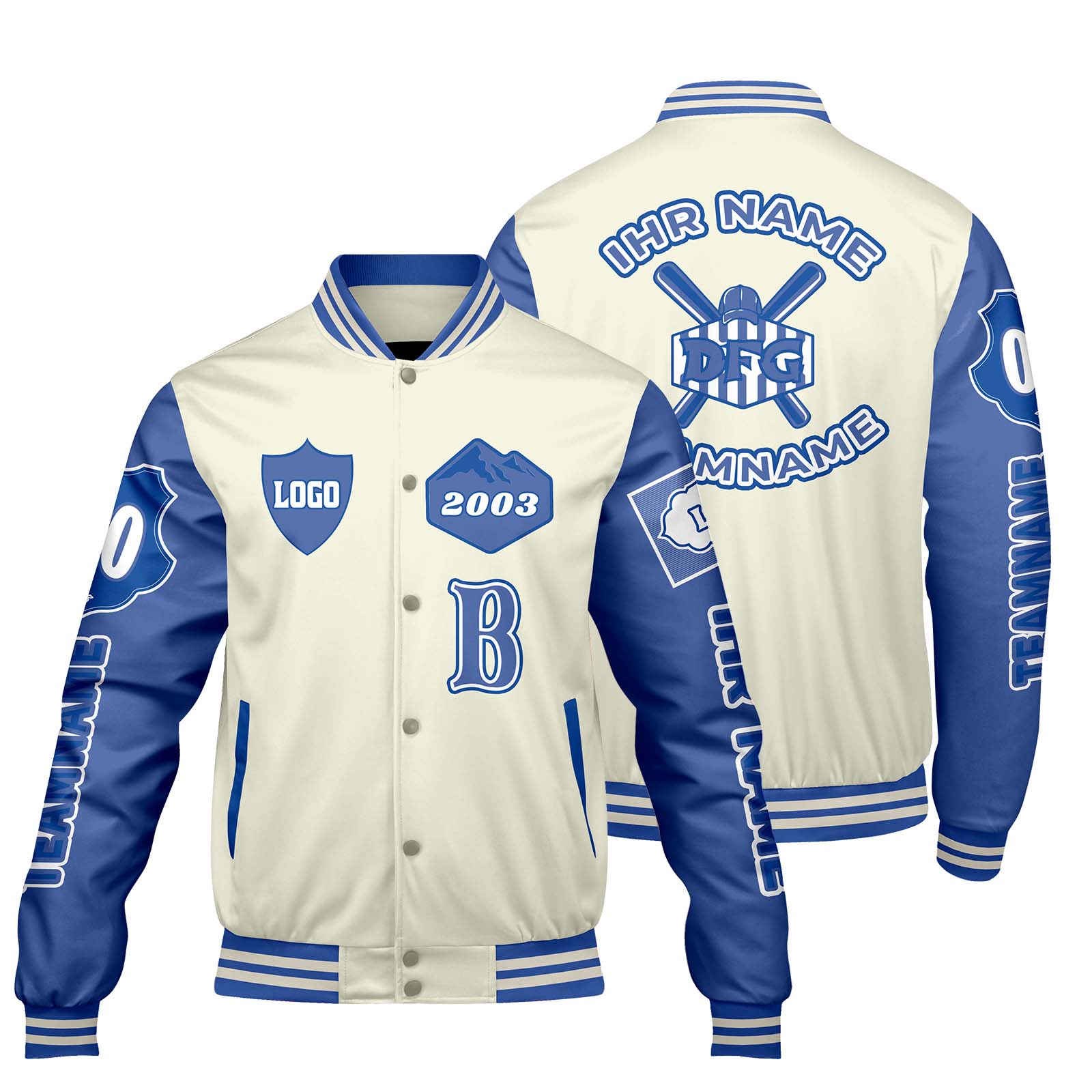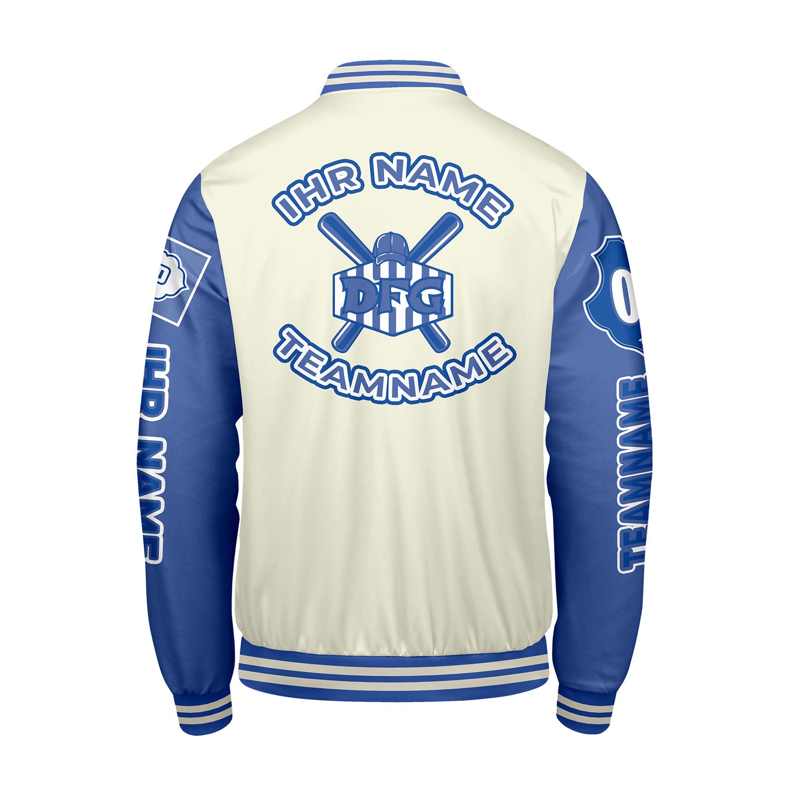 Echte Custom-Jacke mit retro Style. Stick deinen Namen, Logo & Nummer drauf – komplett dein Design. Mega bequem, warm und robust. Perfekt für Sportler und Fans.
