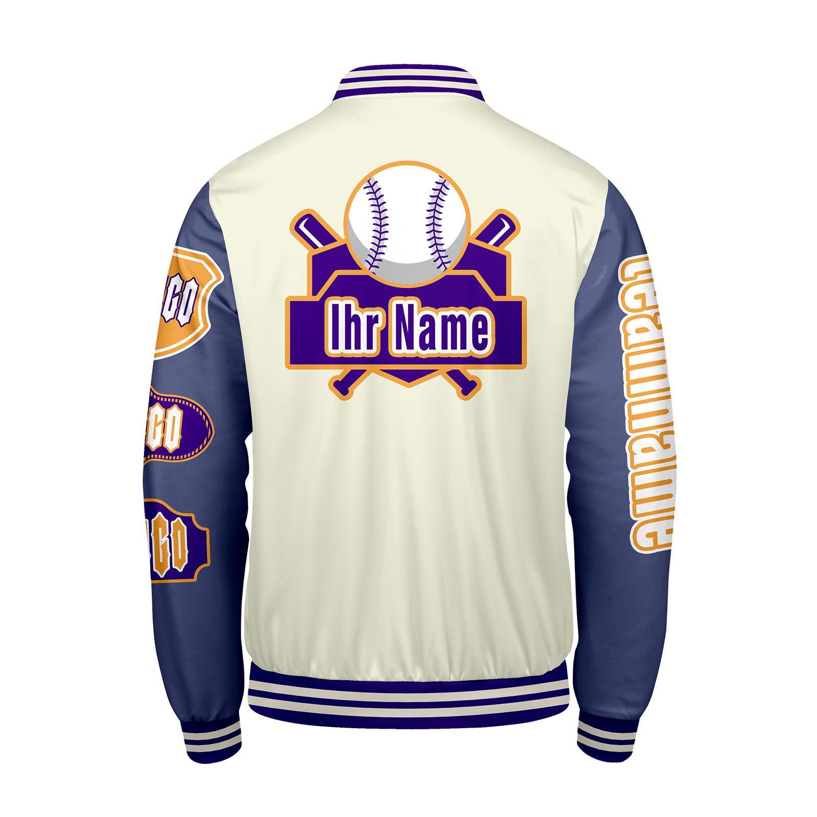Echte Custom-Jacke mit retro Style. Stick deinen Namen, Logo & Nummer drauf – komplett dein Design. Mega bequem, warm und robust. Perfekt für Sportler und Fans.