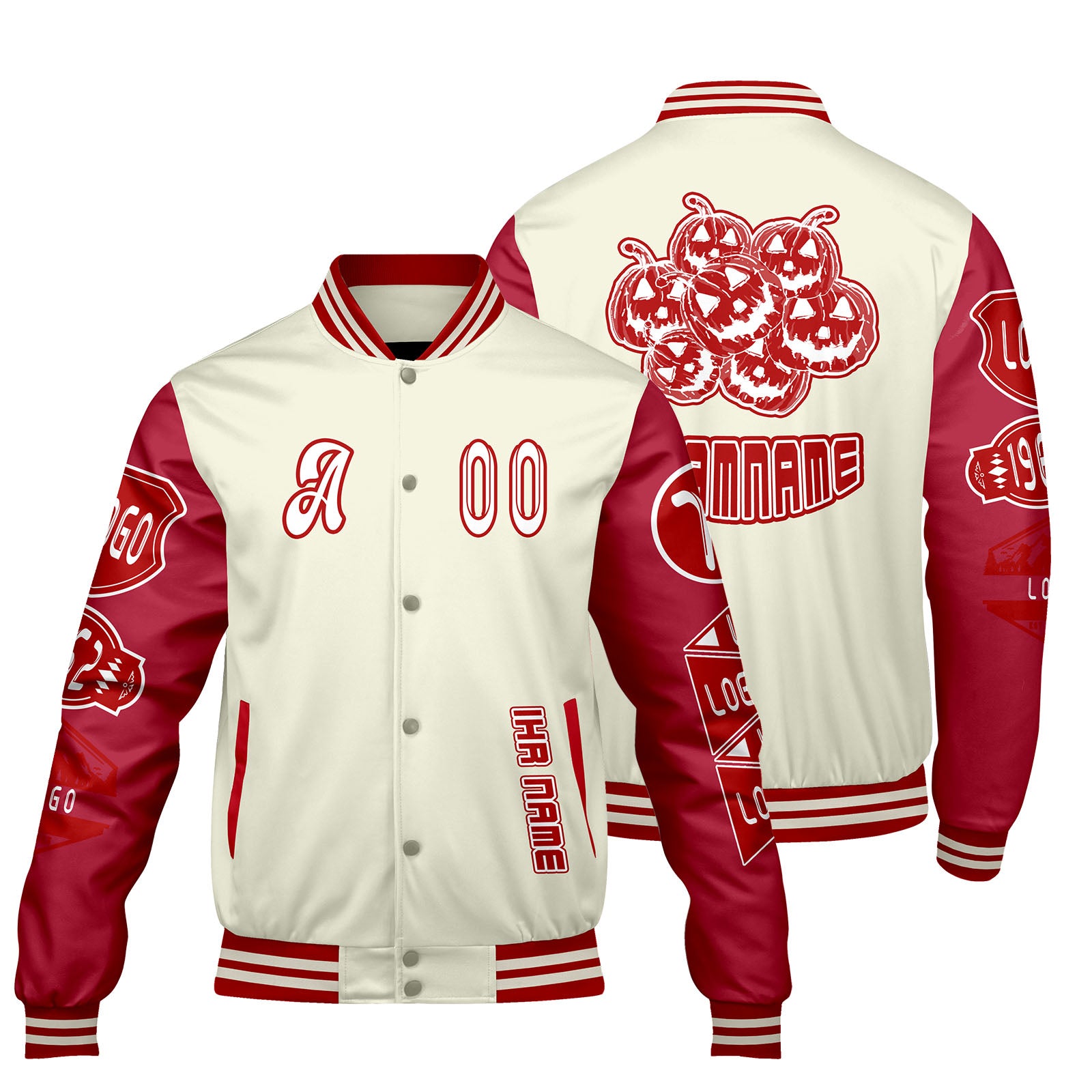Maßgeschneiderte Weiß Rot Letterman Varsity Jacket Individuelle Stickerei  Druck nach Ihrem Wunsch