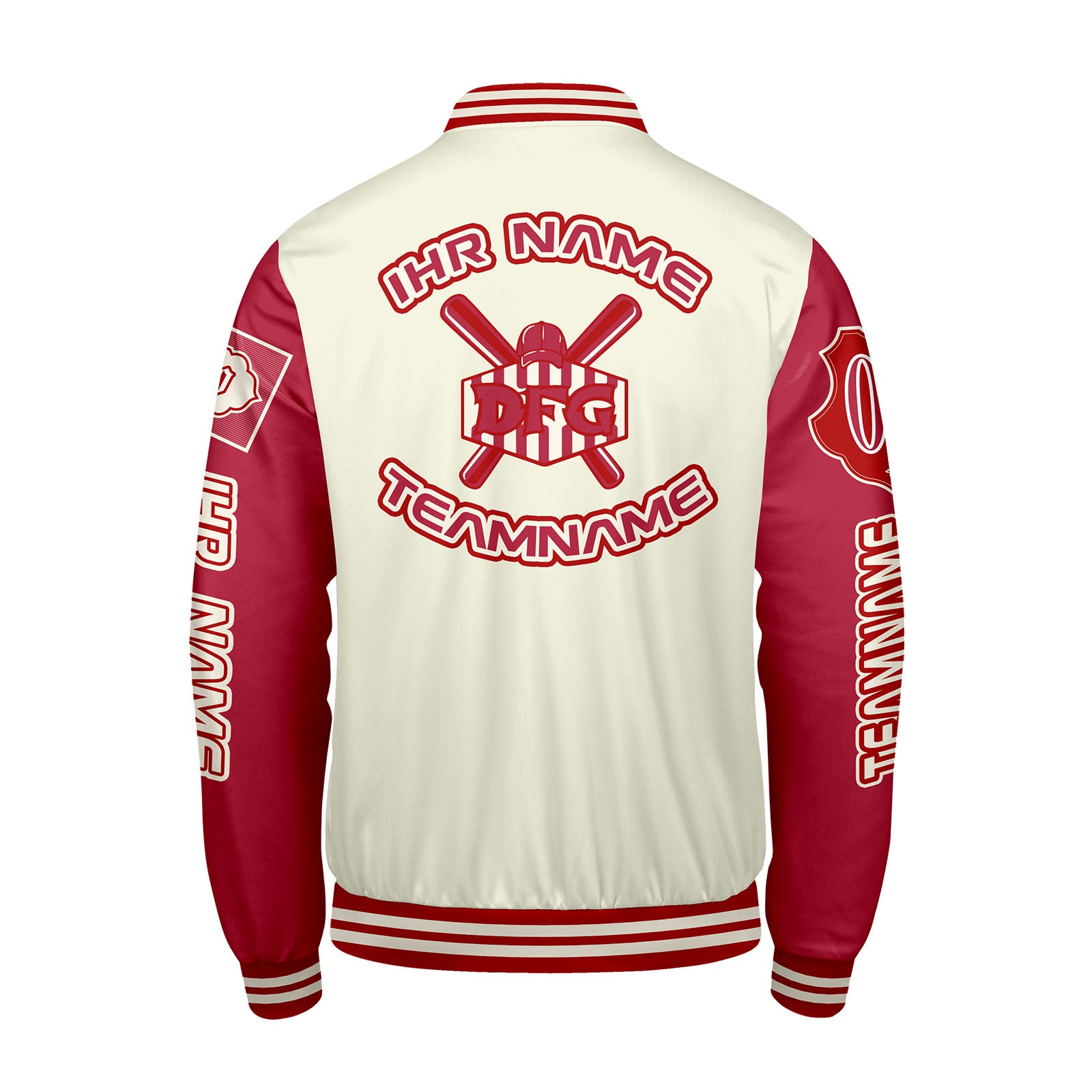 Echte Custom-Jacke mit retro Style. Stick deinen Namen, Logo & Nummer drauf – komplett dein Design. Mega bequem, warm und robust. Perfekt für Sportler und Fans.